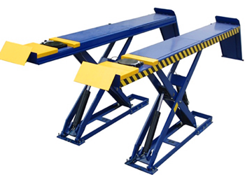 地上式舉升機無需挖槽,適用于任何修理廠,有一些樓板上不適合安裝二柱舉升機以及普通四柱舉升機,而本機器與樓板接觸面廣,這樣可以安裝在任何可以開車的樓板上面,解決客戶場地問題。剪式舉升機比兩柱和四柱舉升機極大的好處是不占用空間,方便使用,不足之處則是補油平衡要求很嚴格,而且需配備控制箱,造價較貴。