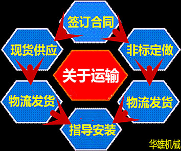 華雄機械對于常規產品現貨供應,當天訂貨,當天發貨,購買便捷。我公司按照合同規定的時間、地點,把貨物運輸到目的地。貨物托運后,我公司按照物流變更隨時通知收貨人。對于非標定制,我公司在預定工期內完工之后及時通知客戶,如客戶有指定物流或快遞,我們會按照客戶要求發貨,如果客戶無特殊制定物流或快遞,我公司默認德邦物流發貨。